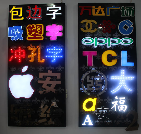 沖孔字即鐵皮字,不銹鋼字,鋁字,鈦金字表面沖孔裝上單顆防水燈串.沖孔招顯品與時尚,大大提升規(guī)模與檔次.我們可以看到個個帶燈的字,從字的表面可以很清楚的看出光源.也可以很清楚的看到個個的孔,這樣的字就是沖孔字.顏色也是有很多.間距是根據(jù)字的大小來決定的.